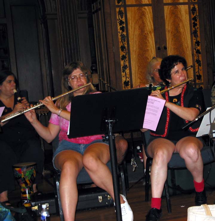 Dancers Barbara Brivick and Sue Karchner chat while the orchestra is getting
