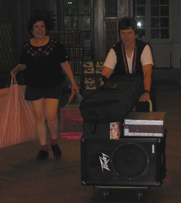 Leader Sue Anderson (right) arrives with equipment, helped by Carol Wadlinger